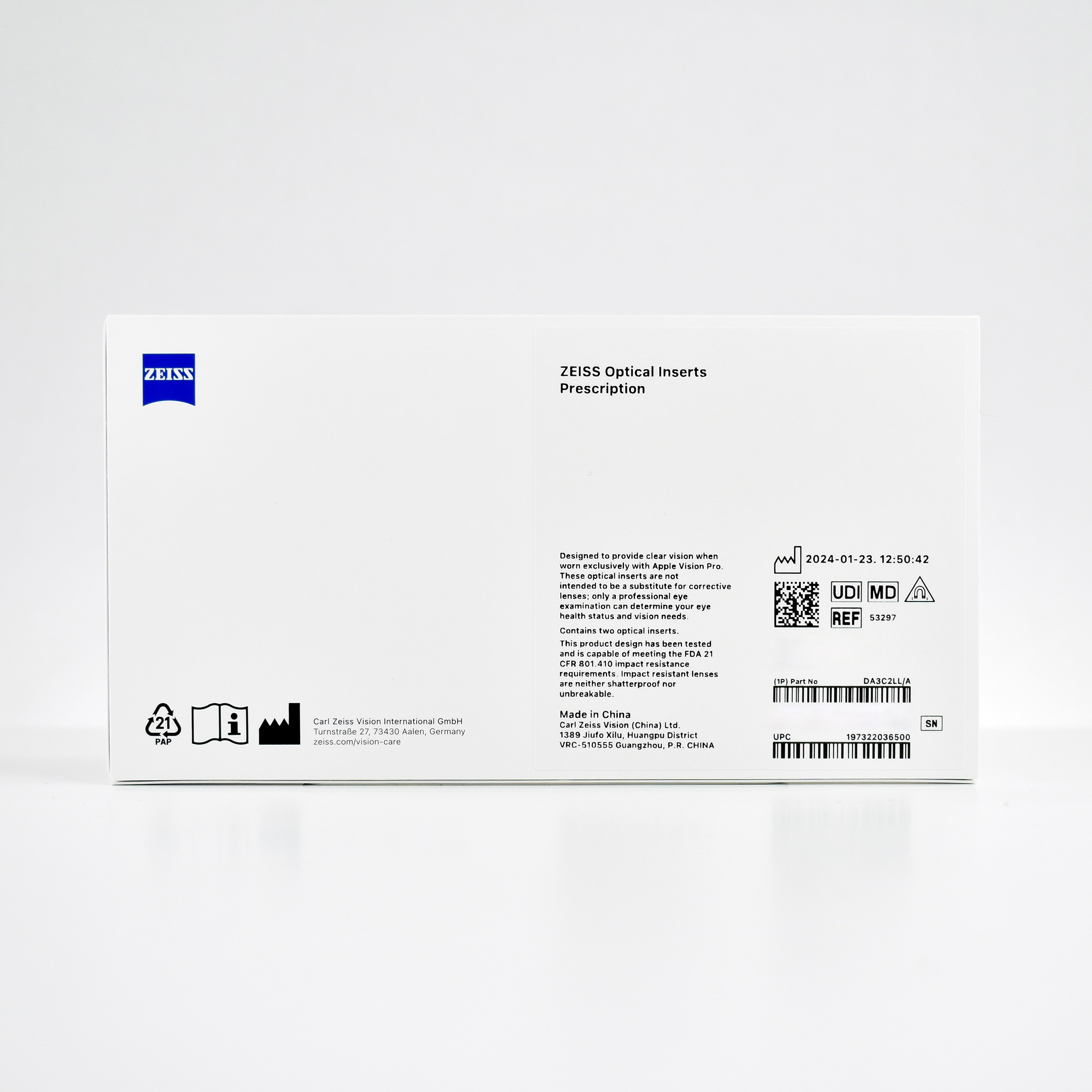 “ZEISS and Apple are setting the standard for optical inserts. For those who need vision correction, ZEISS Optical Inserts reveal the stunning visual experience of Apple Vision Pro—so you can enjoy Apple’s new era of spatial computing.”