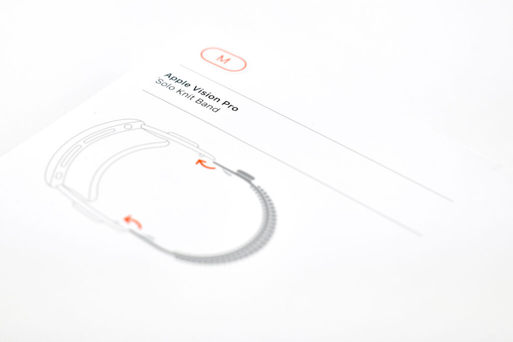 Dual Loop Band and Solo Knit Band—The two bands that shipped each represented impressive engineering and design to fit the 22.9 ounce (1.43 pounds) device to the head and provide relative comfort and support during use. The Dual Loop Band provided a 2-strap system that supported the device around the back and over the top of the head with adjustable velcro closures. The Solo Knit Band was a single thicker band that was “3D knitted as a single piece to create a unique rib structure that provides cushioning, breathability, and stretch. It has an easy-to-reach Fit Dial to let you adjust Apple Vision Pro to your head and enables microadjustments during use.” I personally prefer the Solo Knit Band.
