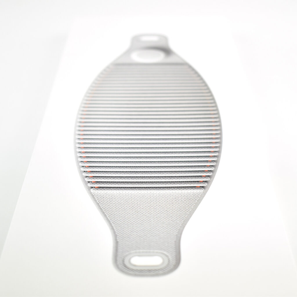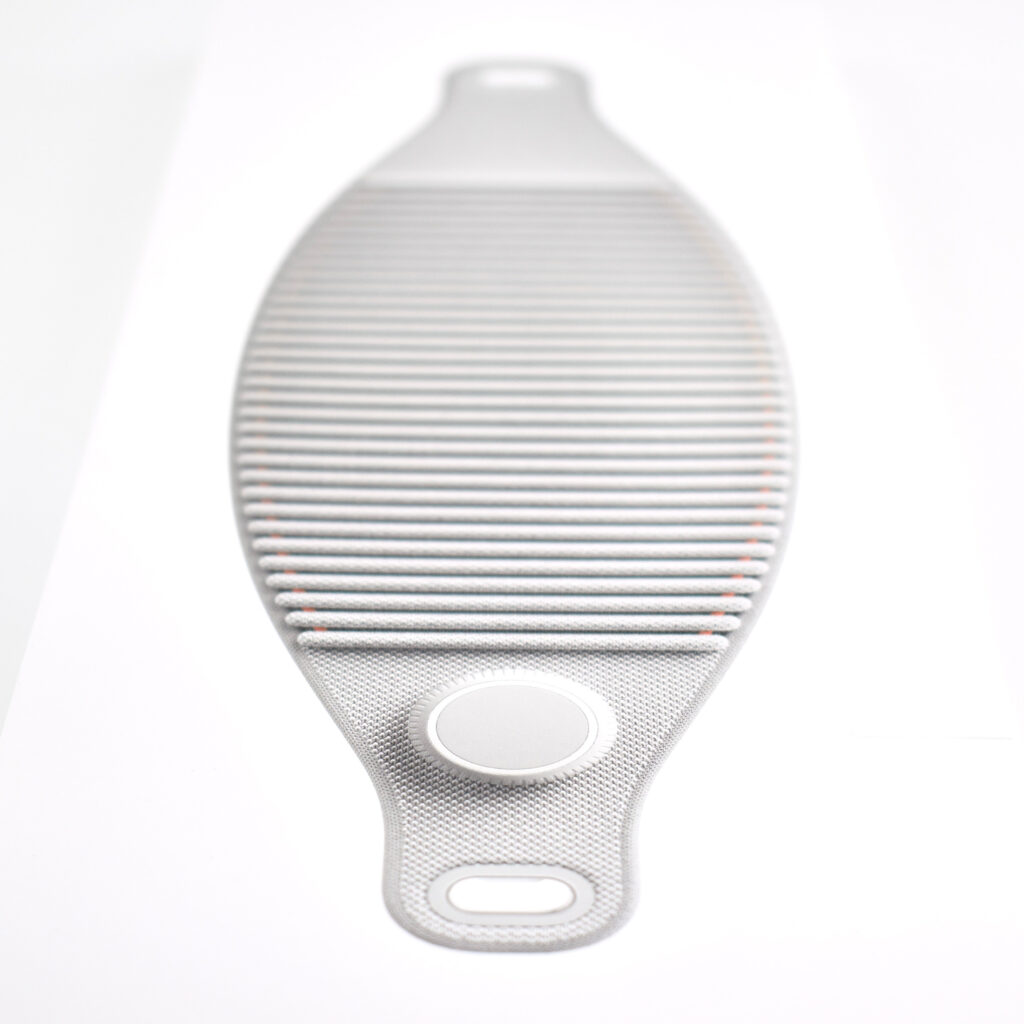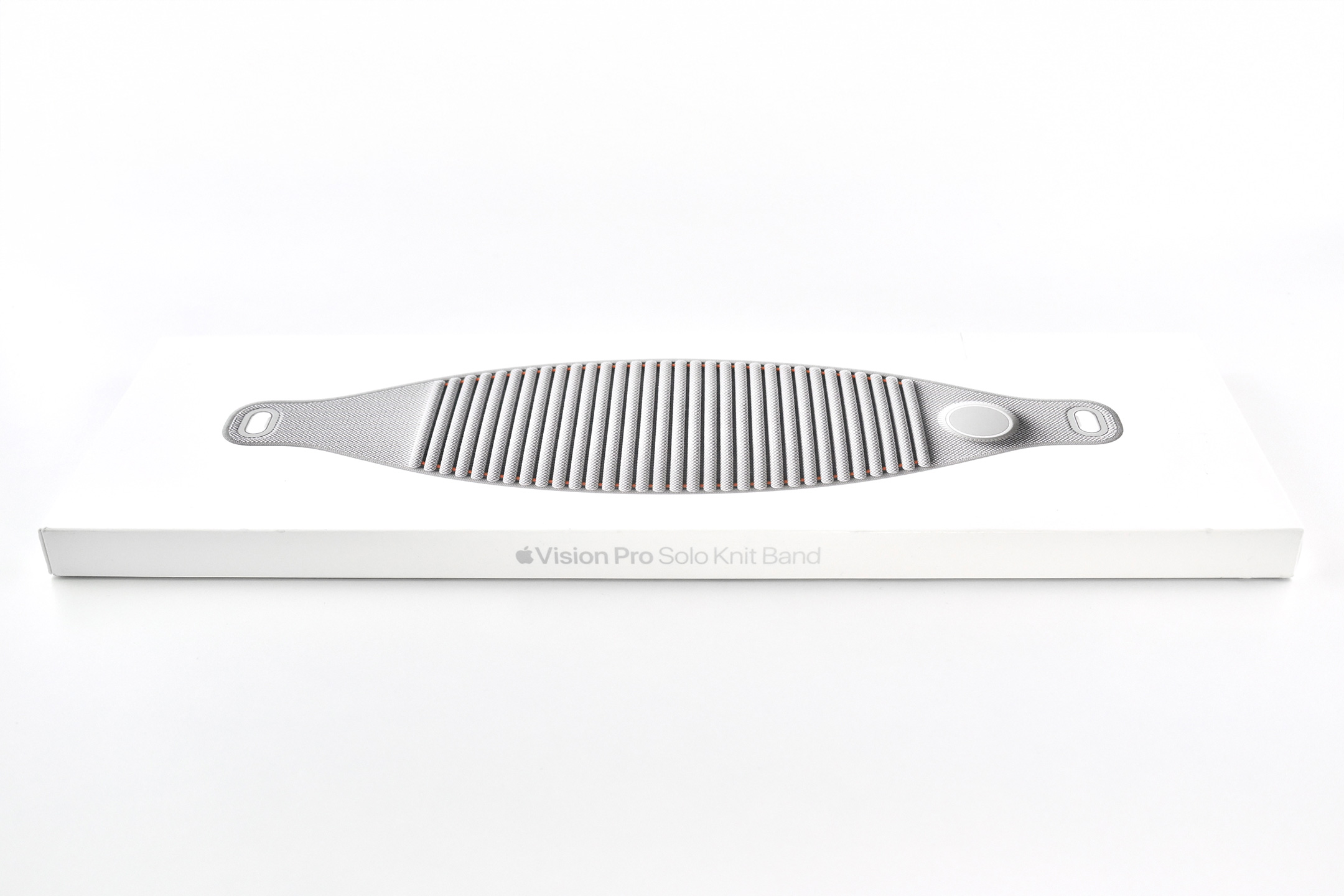 “Designed for Apple Vision Pro, the Solo Knit Band is 3D knitted as a single piece to create a unique rib structure that provides cushioning, breathability, and stretch. It has an easy-to-reach Fit Dial to let you adjust Apple Vision Pro to your head and enables microadjustments during use. The Solo Knit Band attaches to the Audio Straps with a simple and secure mechanism, and the release tabs allow you to detach it when needed.”