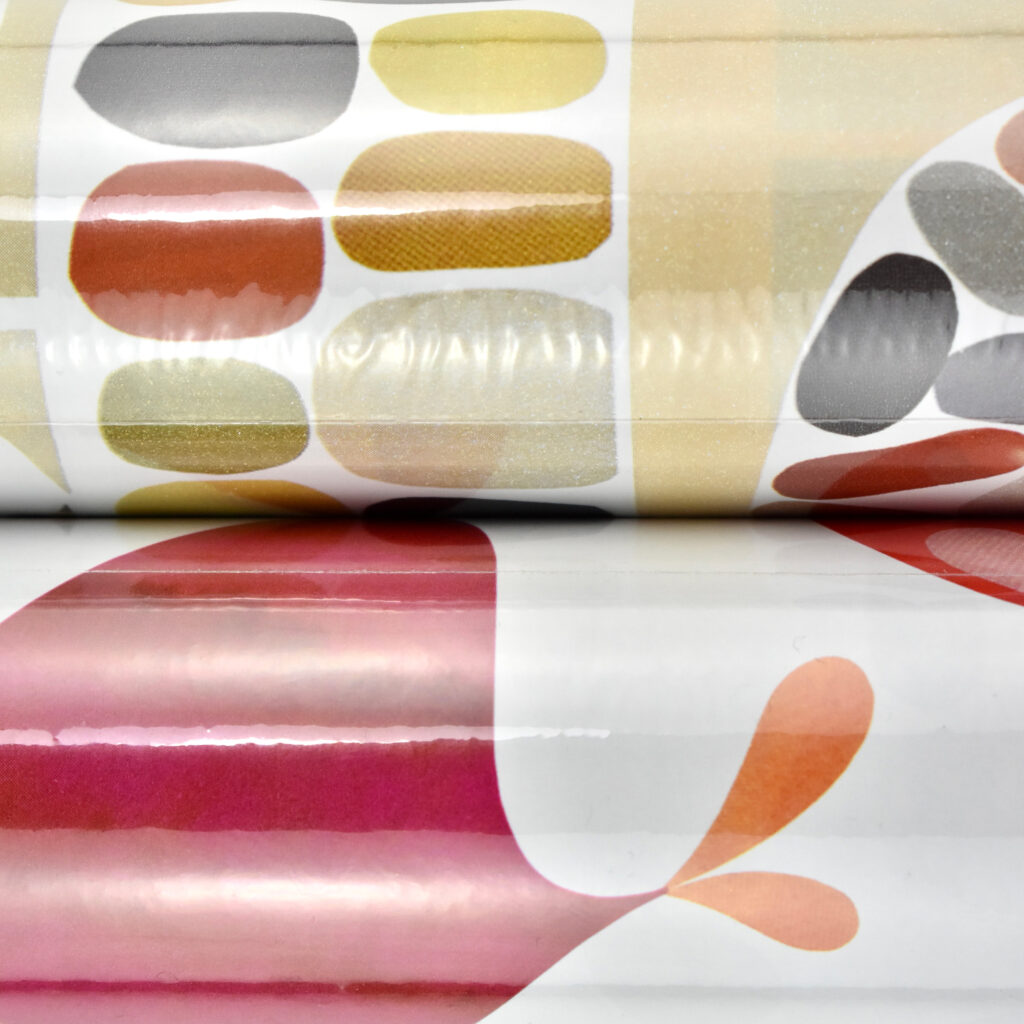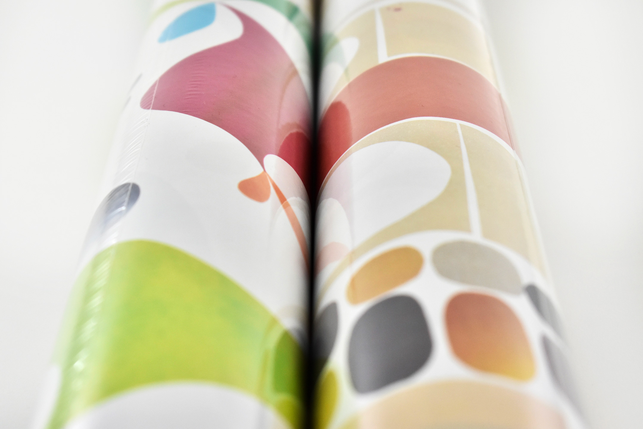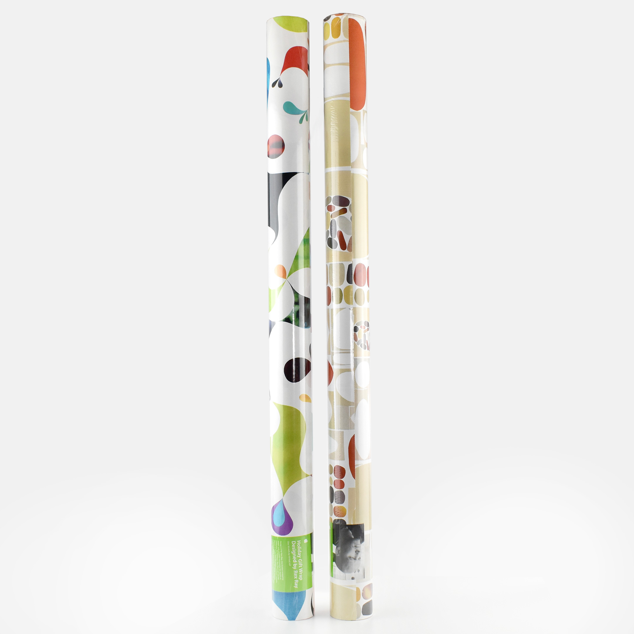 These two gift wrap designs were created for Apple by artist Rex Ray, born September 11, 1956, and died February 9, 2015. He was an “American artist best known for his innovative pop aesthetic in fine and commercial art—on canvases, wood panels, album covers, paper, book jackets, murals, and rock and roll posters.”