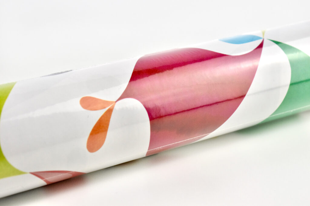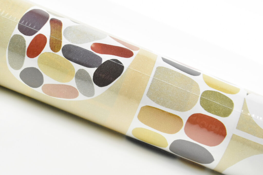 The woman from whom I purchased the gift wrap told me she had purchased all the rolls in stock at an Apple Store in 2002 (presumably Woodfield Mall in Schaumburg, IL—the only Apple Store in the Chicago area at the time). We negotiated a price, and I purchased all of 29 rolls she had.