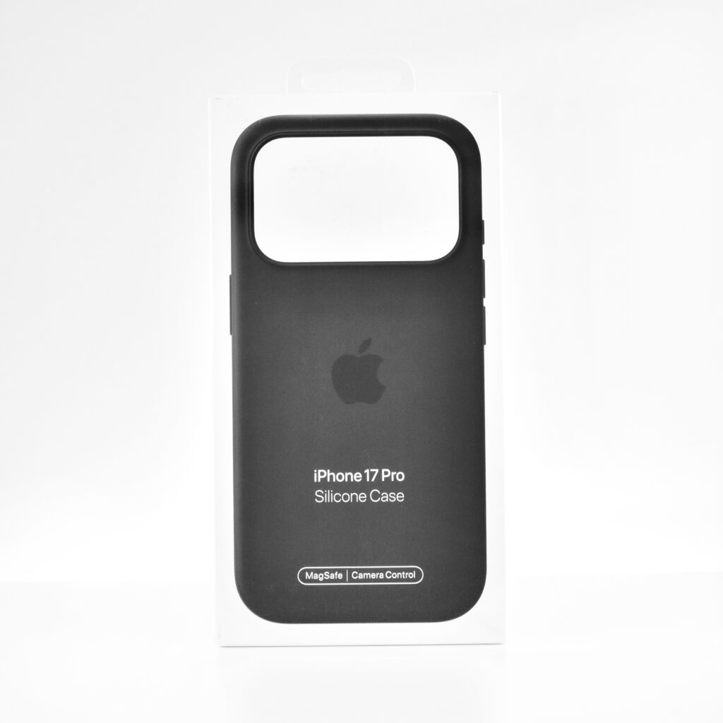 The iPhone 17 Pro Silicone Case was “Designed by Apple to complement iPhone 17 Pro, the Silicone Case with MagSafe is a delightful way to protect your iPhone.” This case also featured a conductive layer to communicate finger movements to the Camera Control button under the volume buttons.