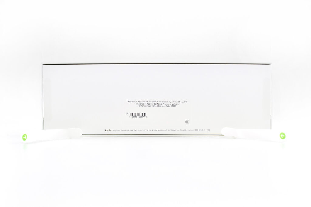 This example is in the Aluminum Space Gray option in the 46 mm size. It shipped with a black M/L Sport Band.