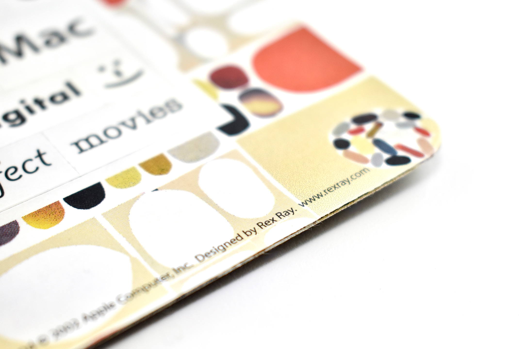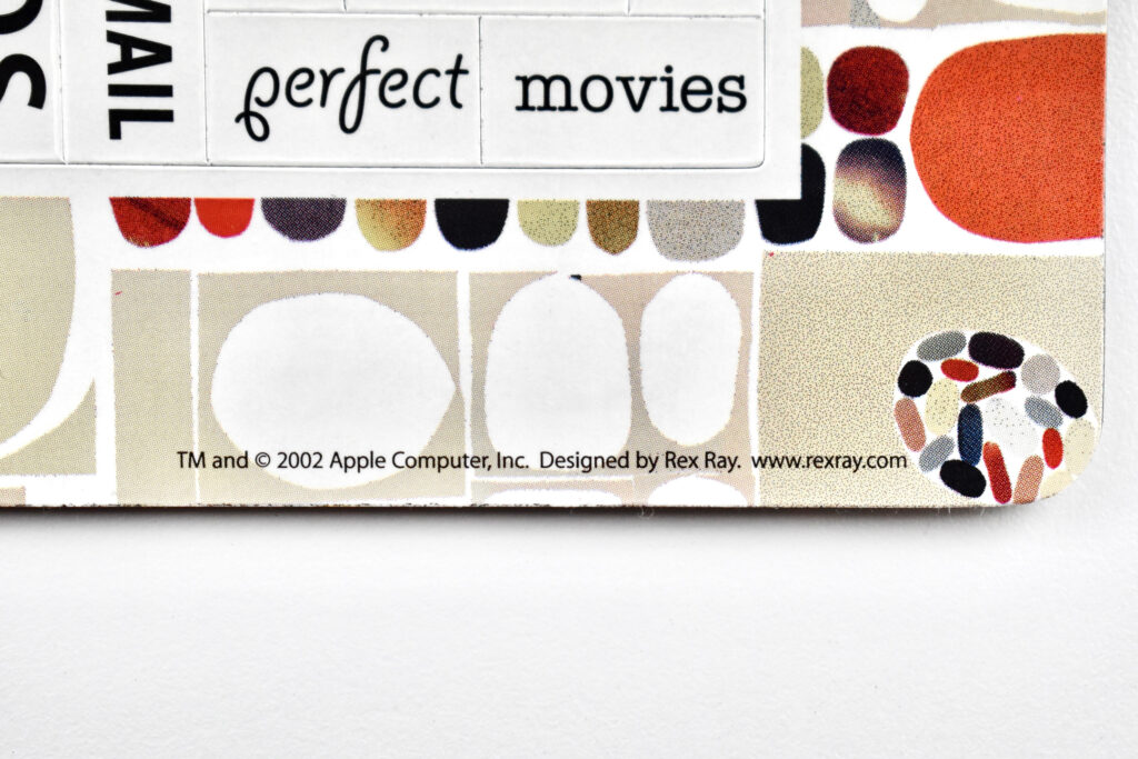 The label on the rolls of gift wrap were bright green with white text in the Apple Myriad font and matched Apple’s product packaging at the time. The label included a black-and-white headshot of Rex Ray, and the product description: