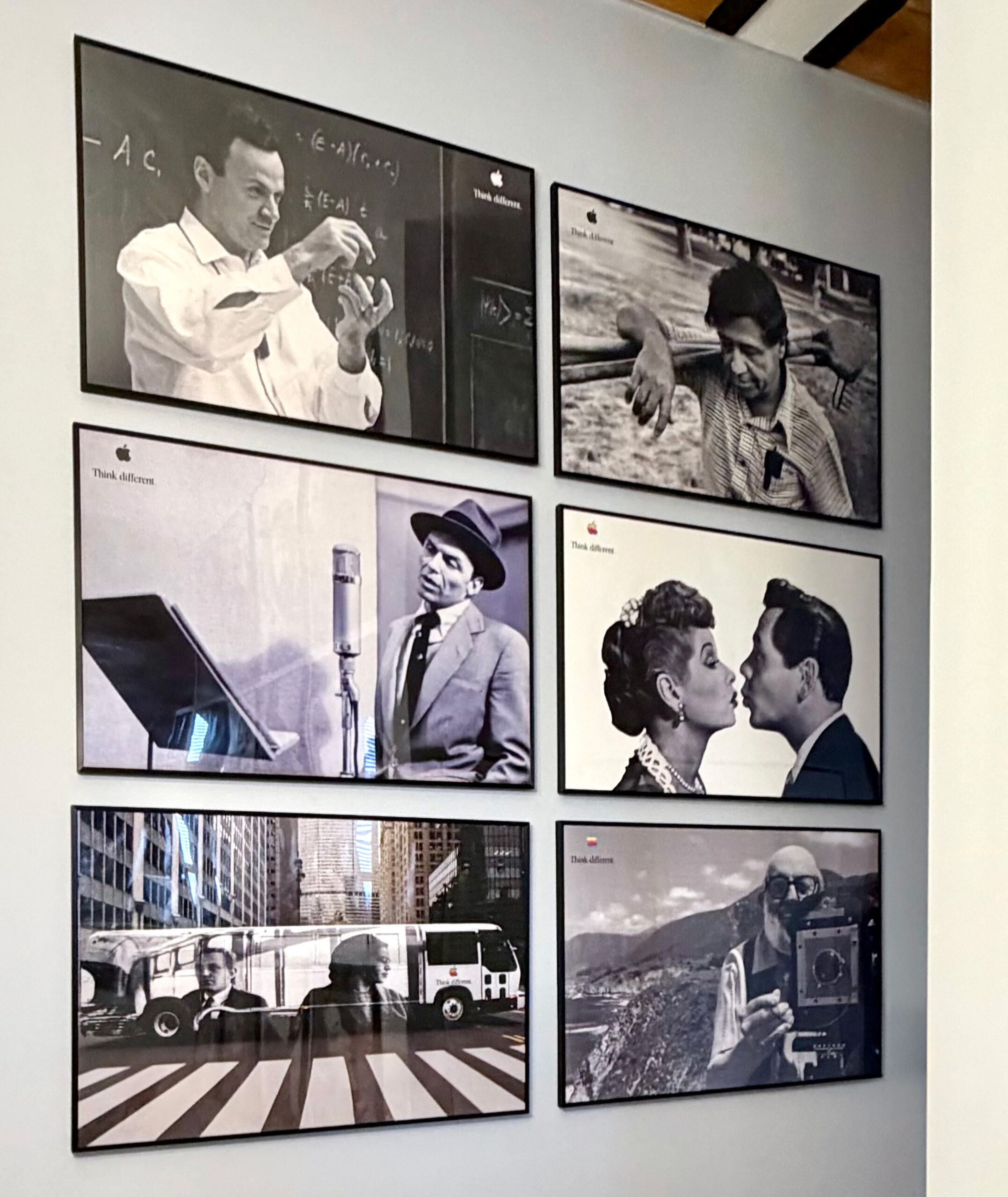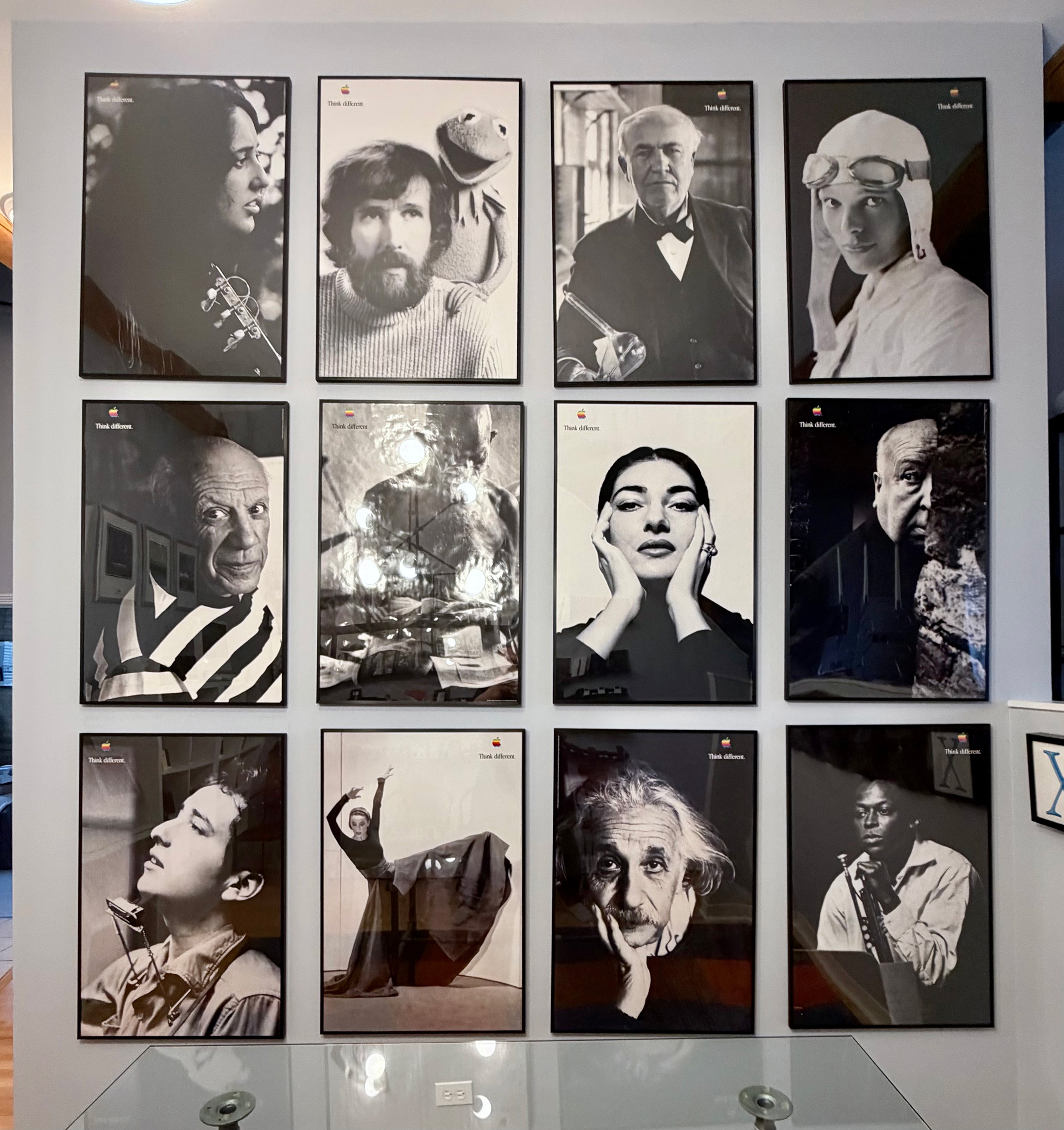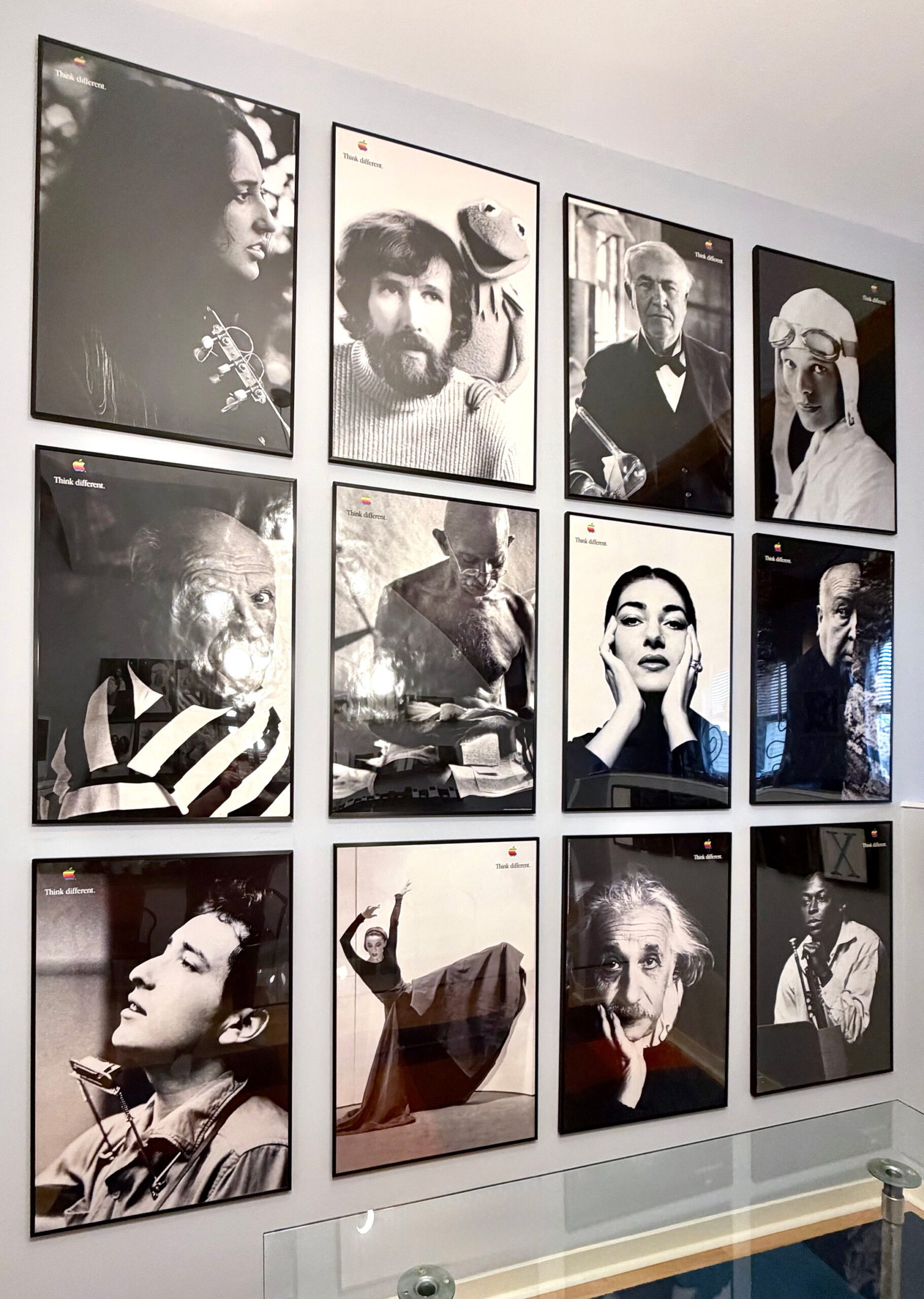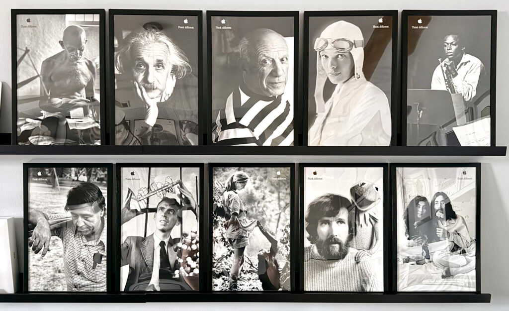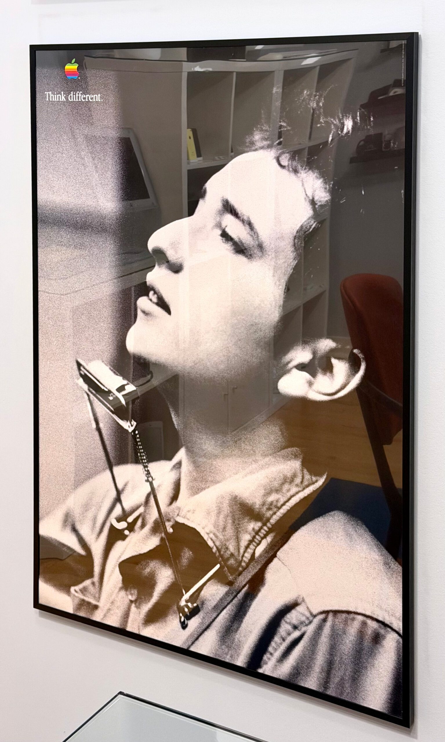 I have collected many of Apple’s Think different posters, print ads, and other materials, including a set of 10 posters that measure 11 x 17 each and were distributed to educators. Some designs in this Think different education set are cropped versions of the 24 x 36 posters.
