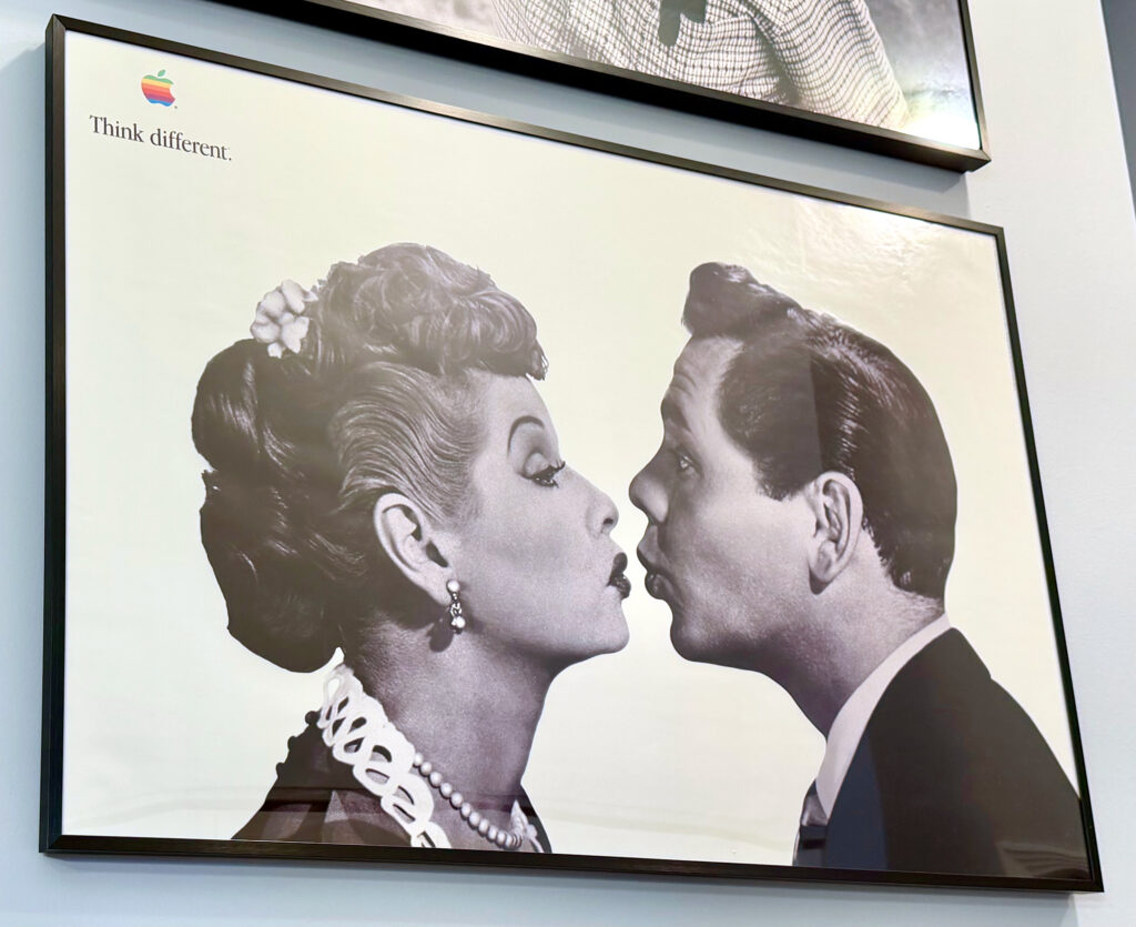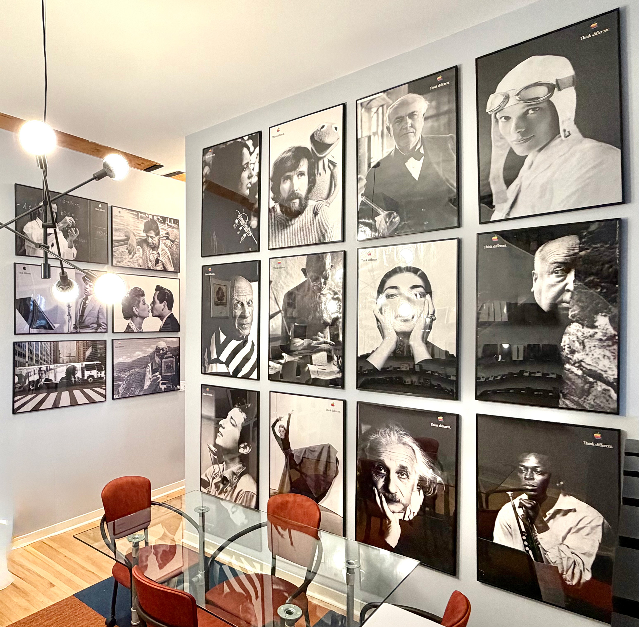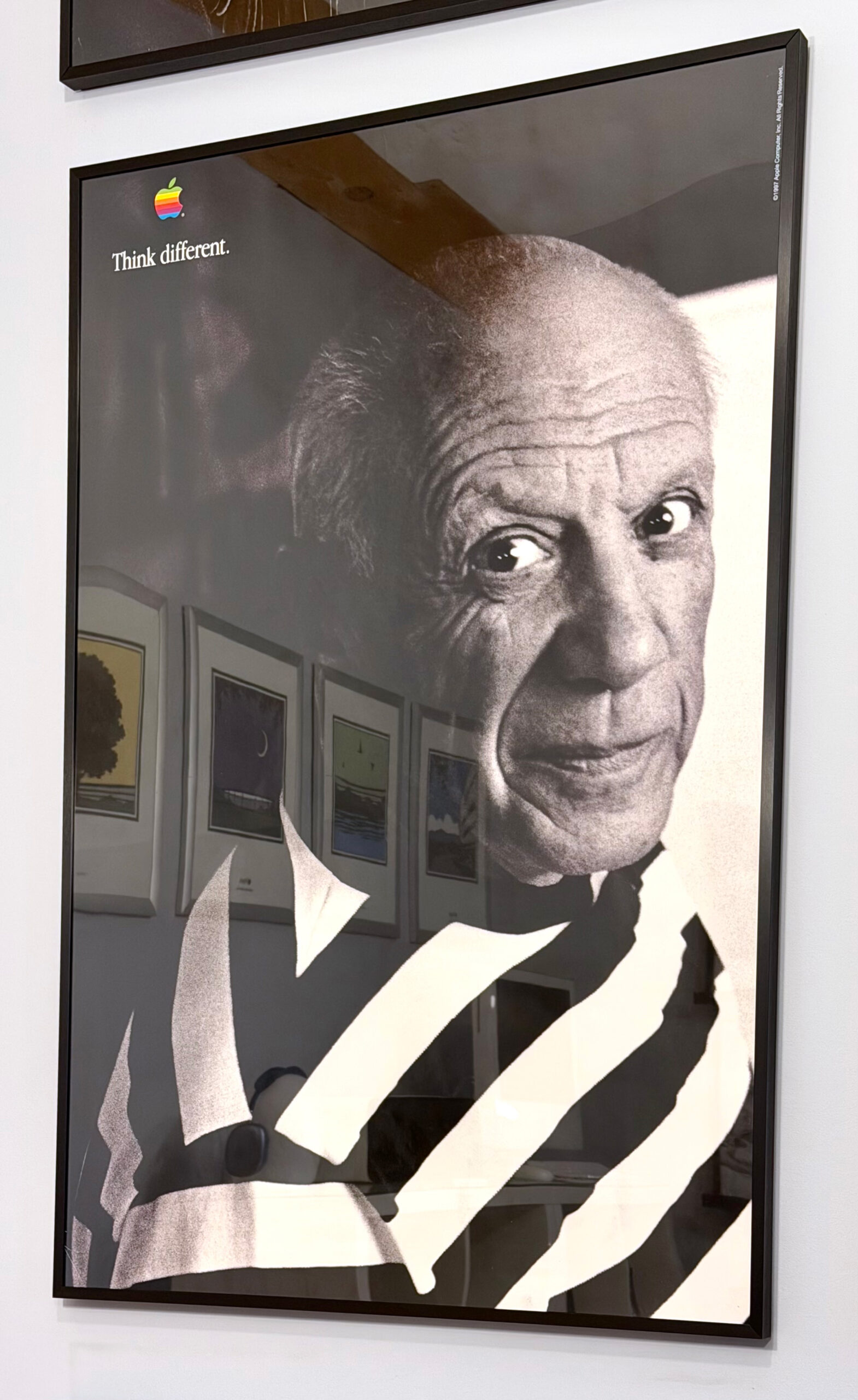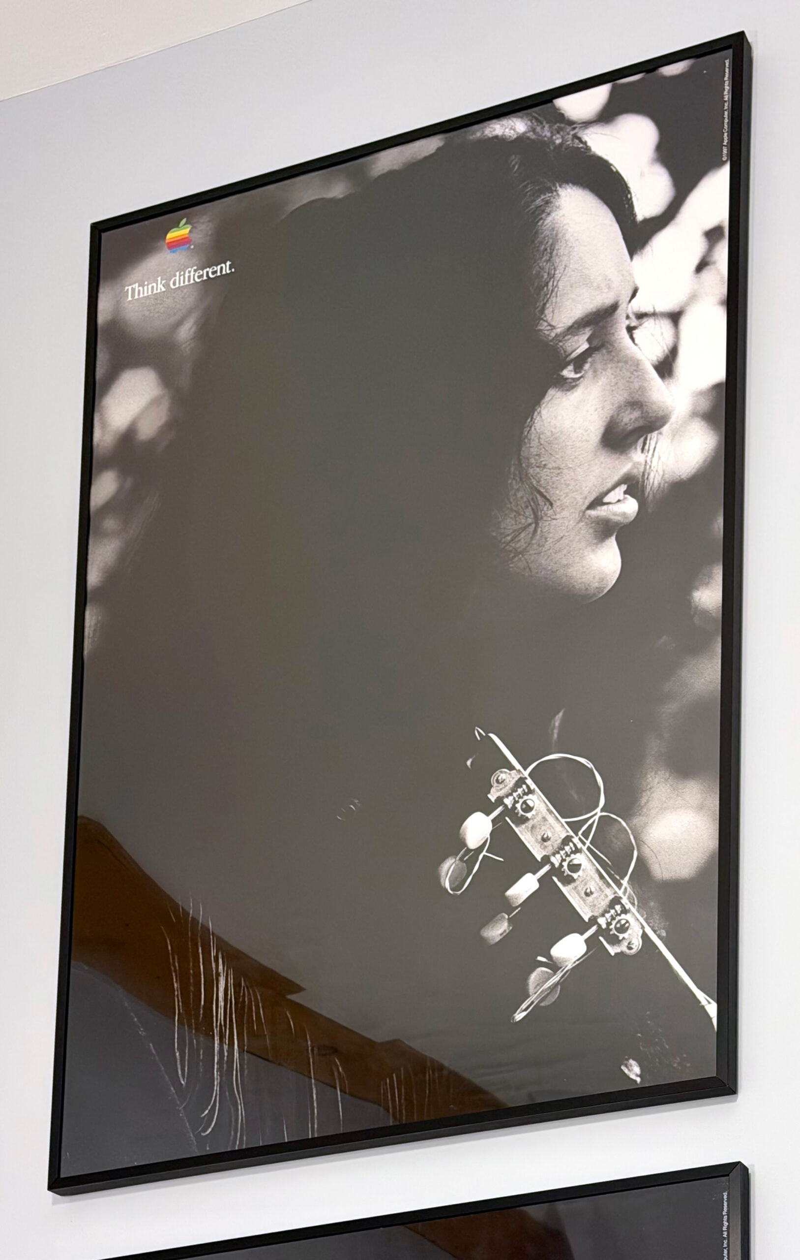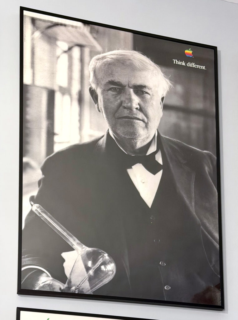 I have collected many of Apple’s Think different posters, print ads, and other materials, including a set of 10 posters that measure 11 x 17 each and were distributed to educators. Some designs in this Think different education set are cropped versions of the 24 x 36 posters.