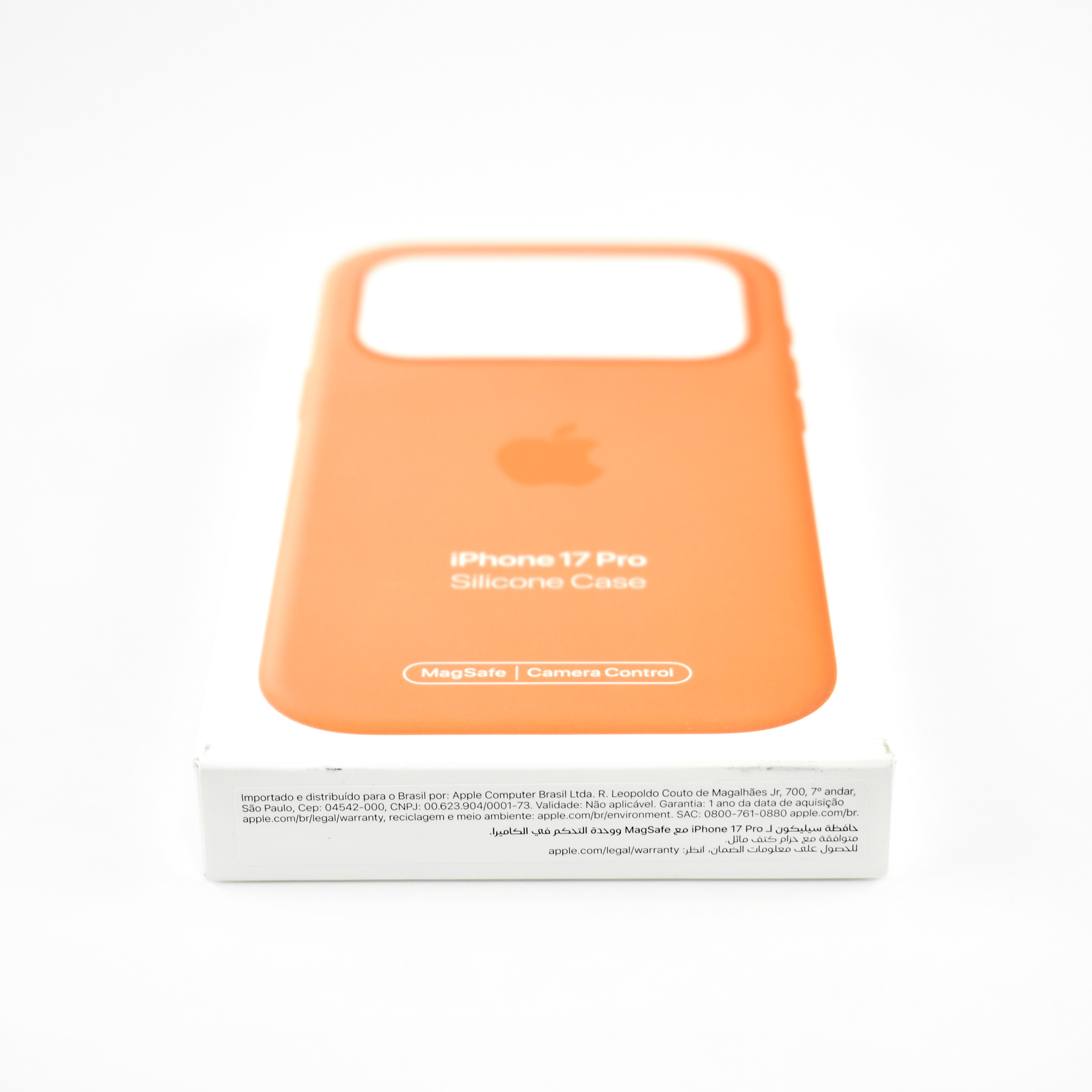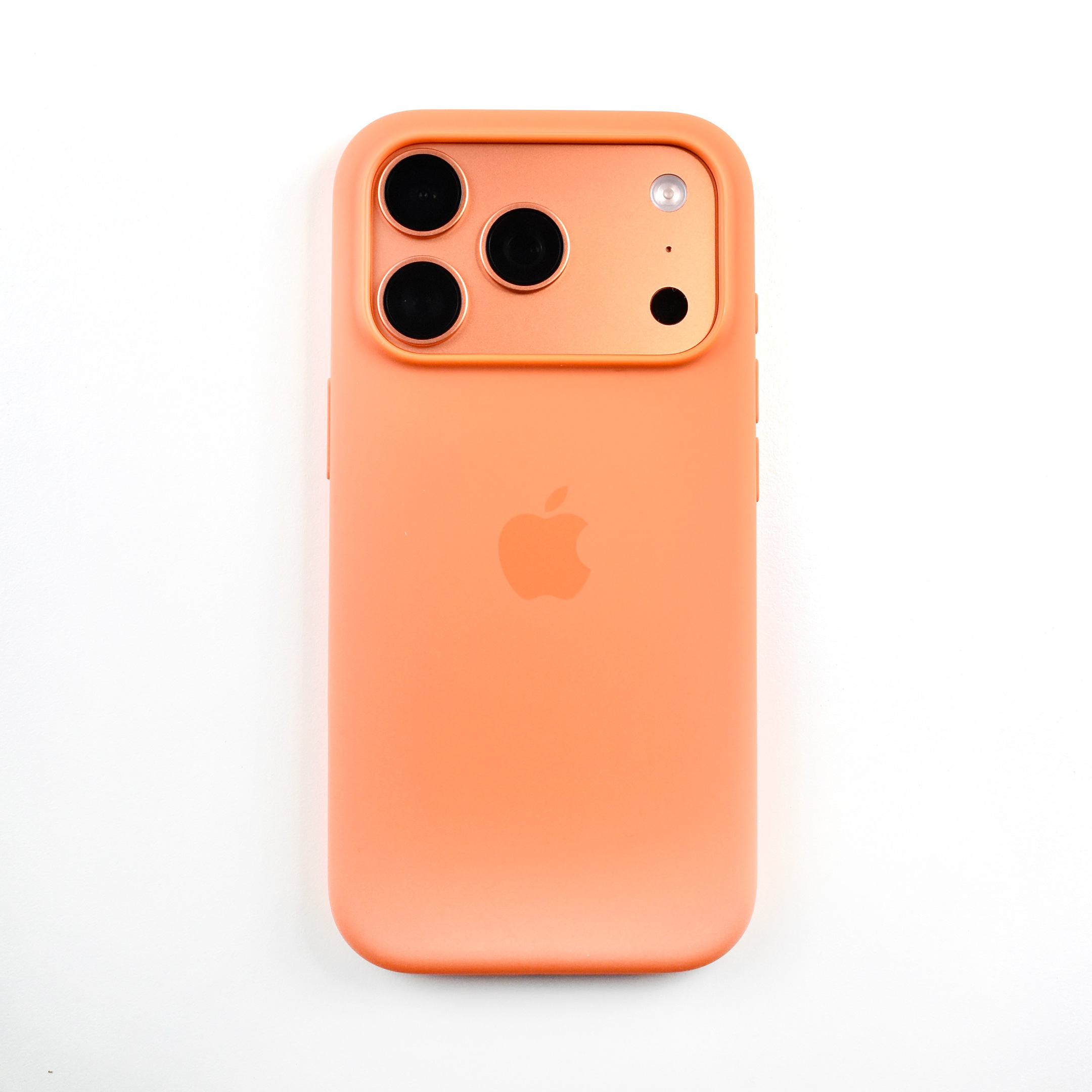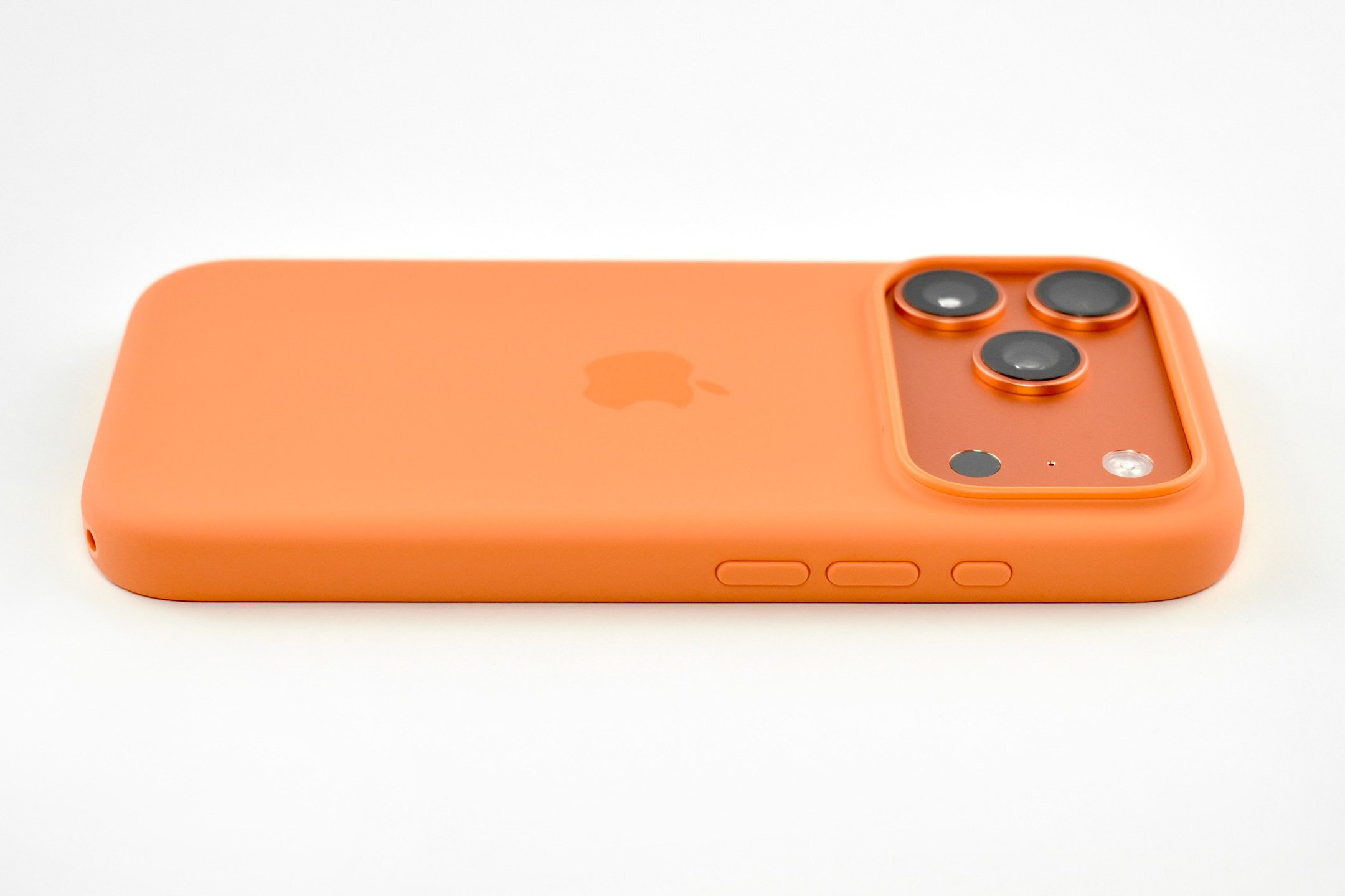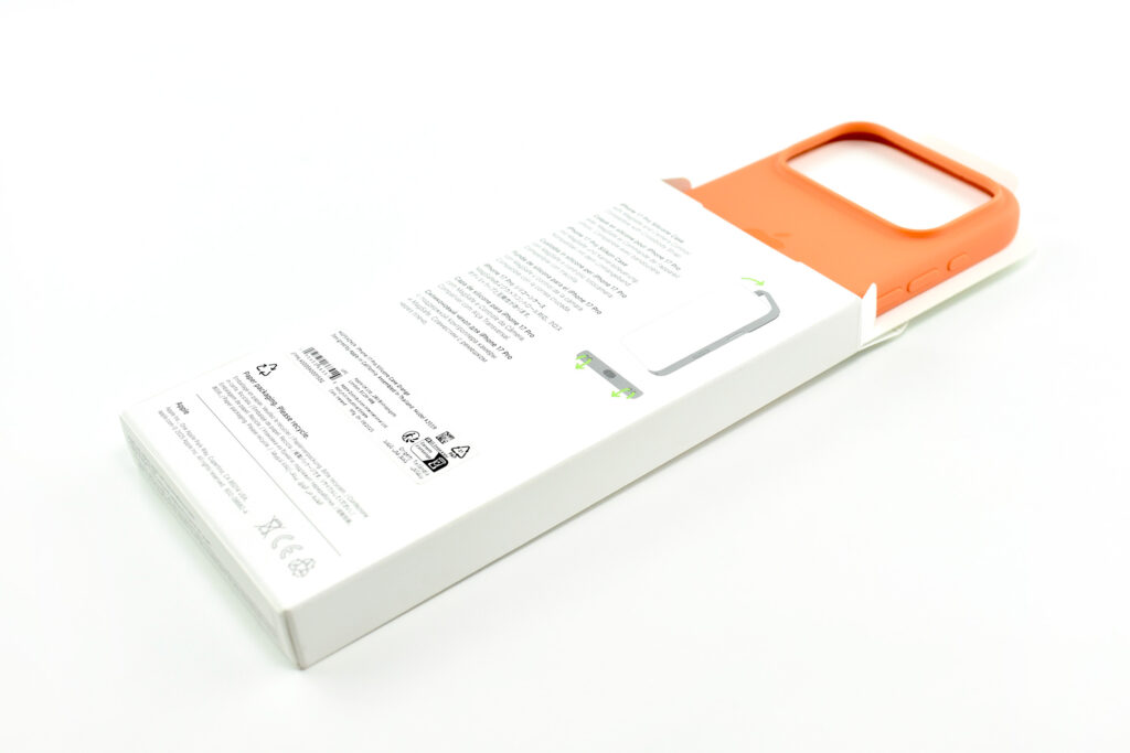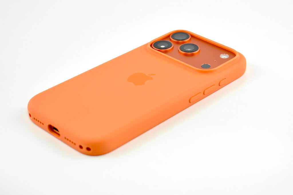 The iPhone 17 Pro Silicone Case was “Designed by Apple to complement iPhone 17 Pro, the Silicone Case with MagSafe is a delightful way to protect your iPhone.” This case also featured a conductive layer to communicate finger movements to the Camera Control button under the volume buttons.