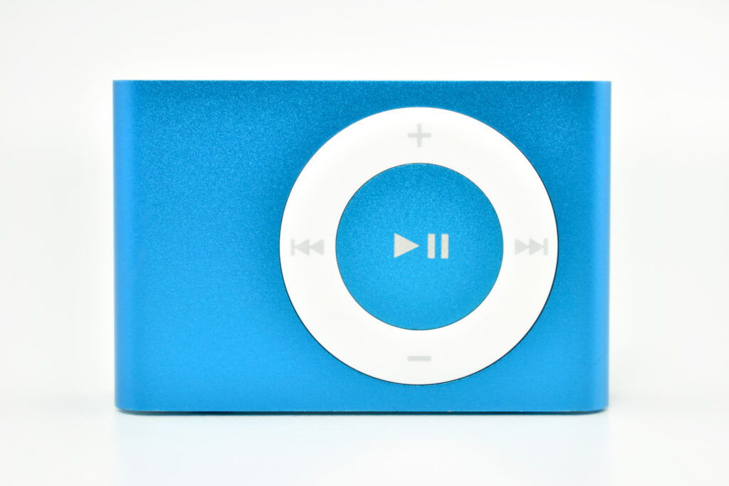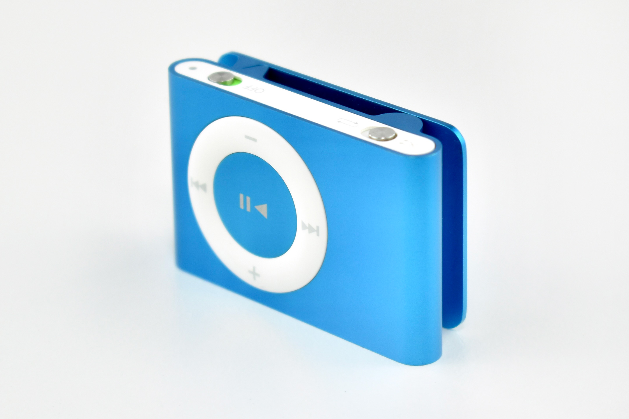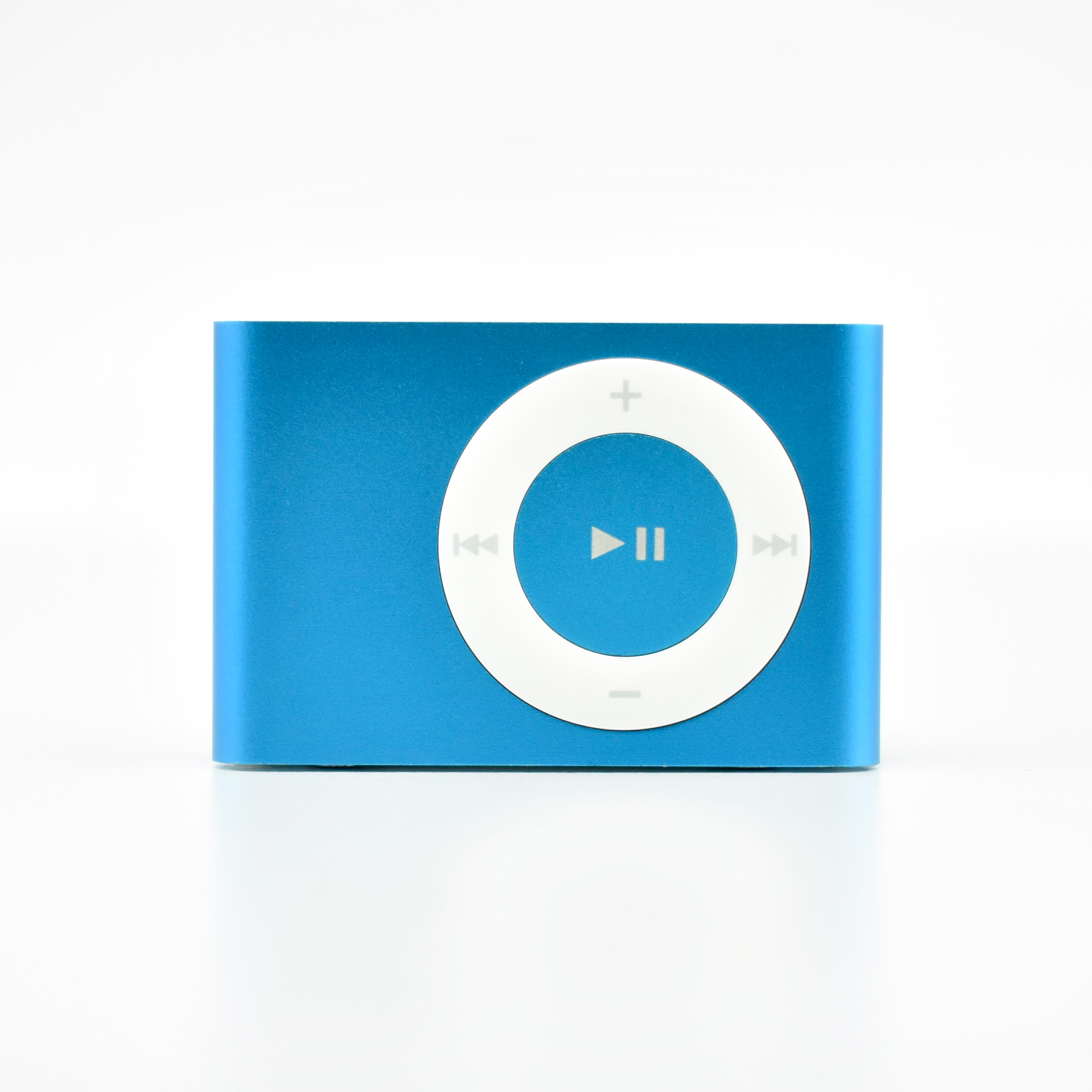 This Generation 2 version of the iPod shuffle was updated to include five colors: silver (original), orange, green, blue, and pink. Also, this revision switched from the old-style “cap” earbuds to a more streamlined earbuds design. This iPod shuffle featured a clip that allowed you to easily attach it to clothing.