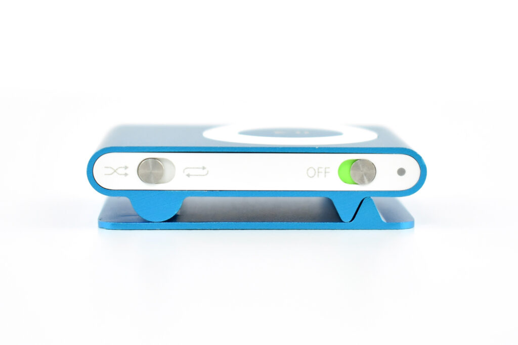 This iPod shuffle’s design greatly differed from the original iPod shuffle that looked and functioned similarly to a flash drive. To charge this iPod shuffle and load it with up to 240 songs, it sat in a small USB base with a protruding 3.5 mm jack that used the audio jack to transfer both data and charging power.