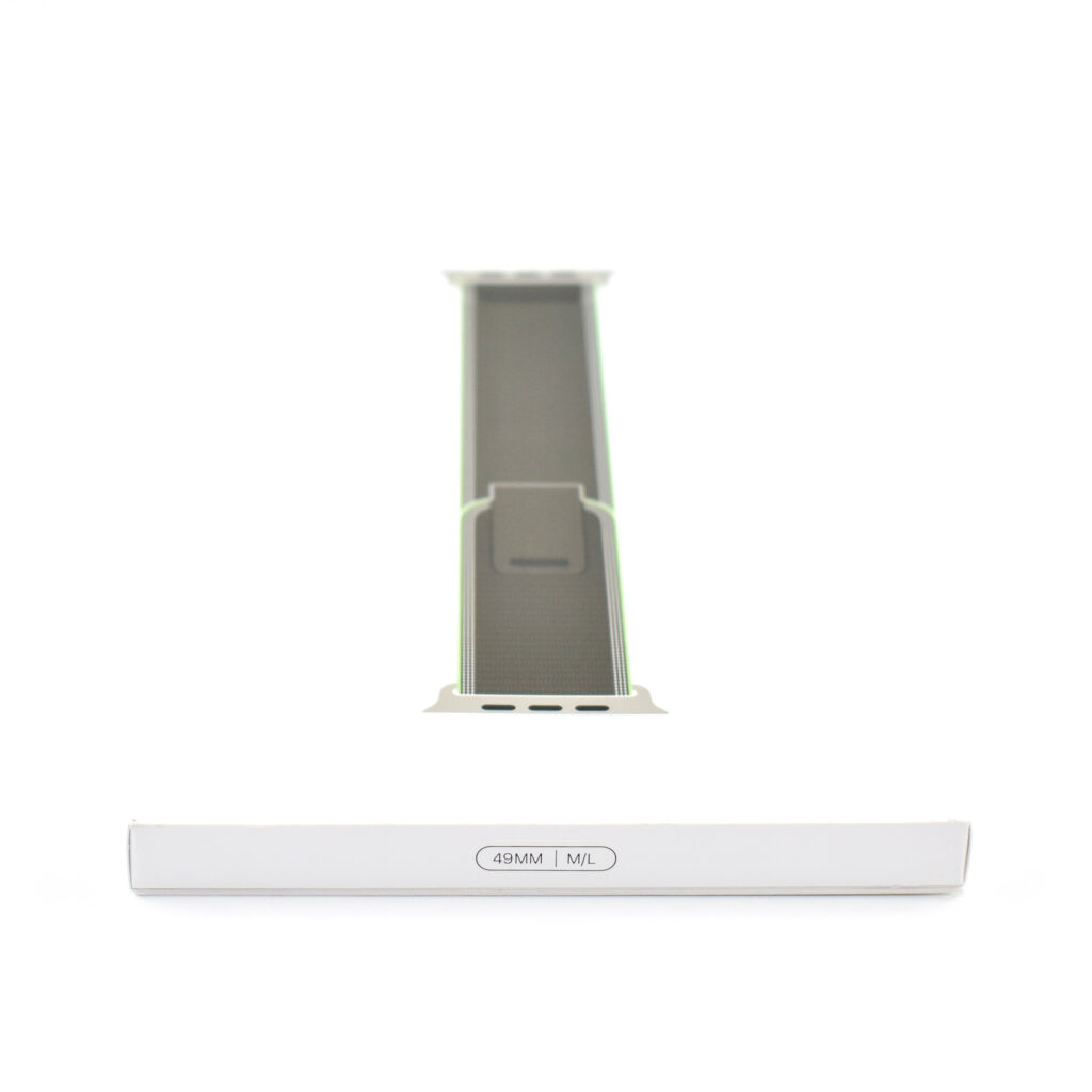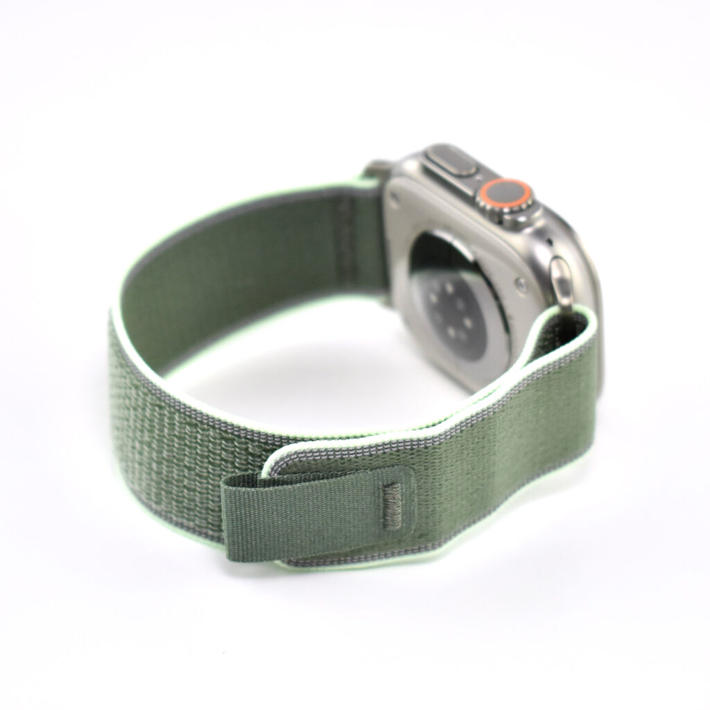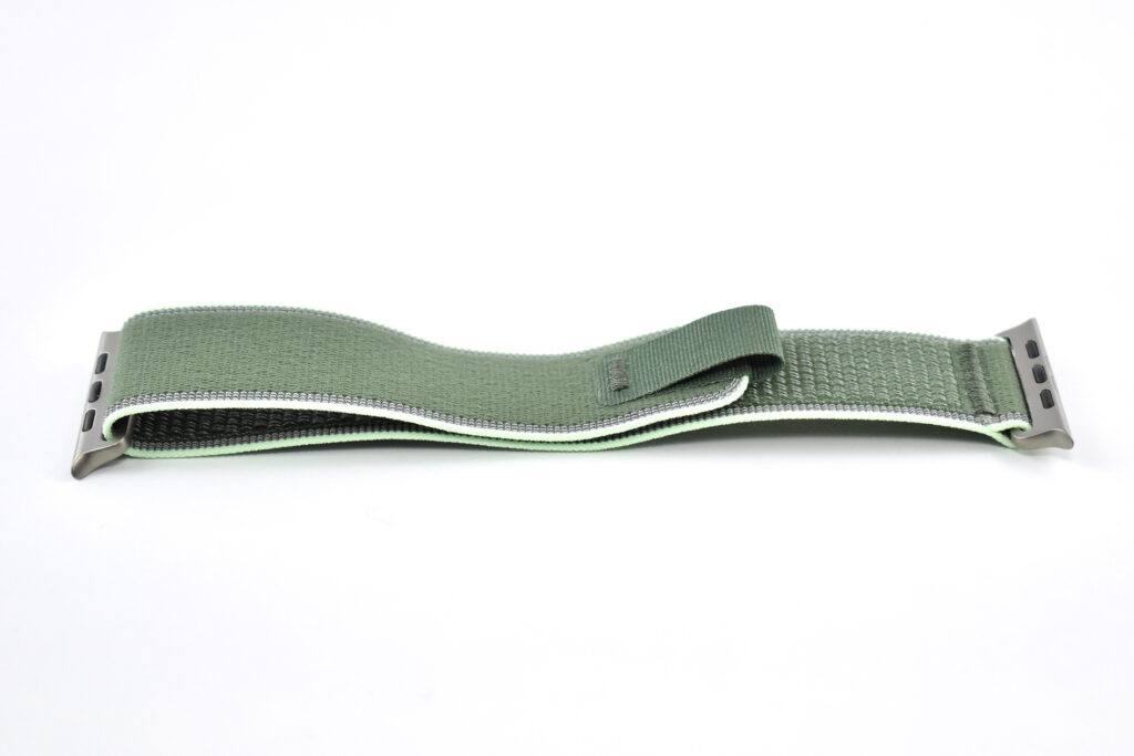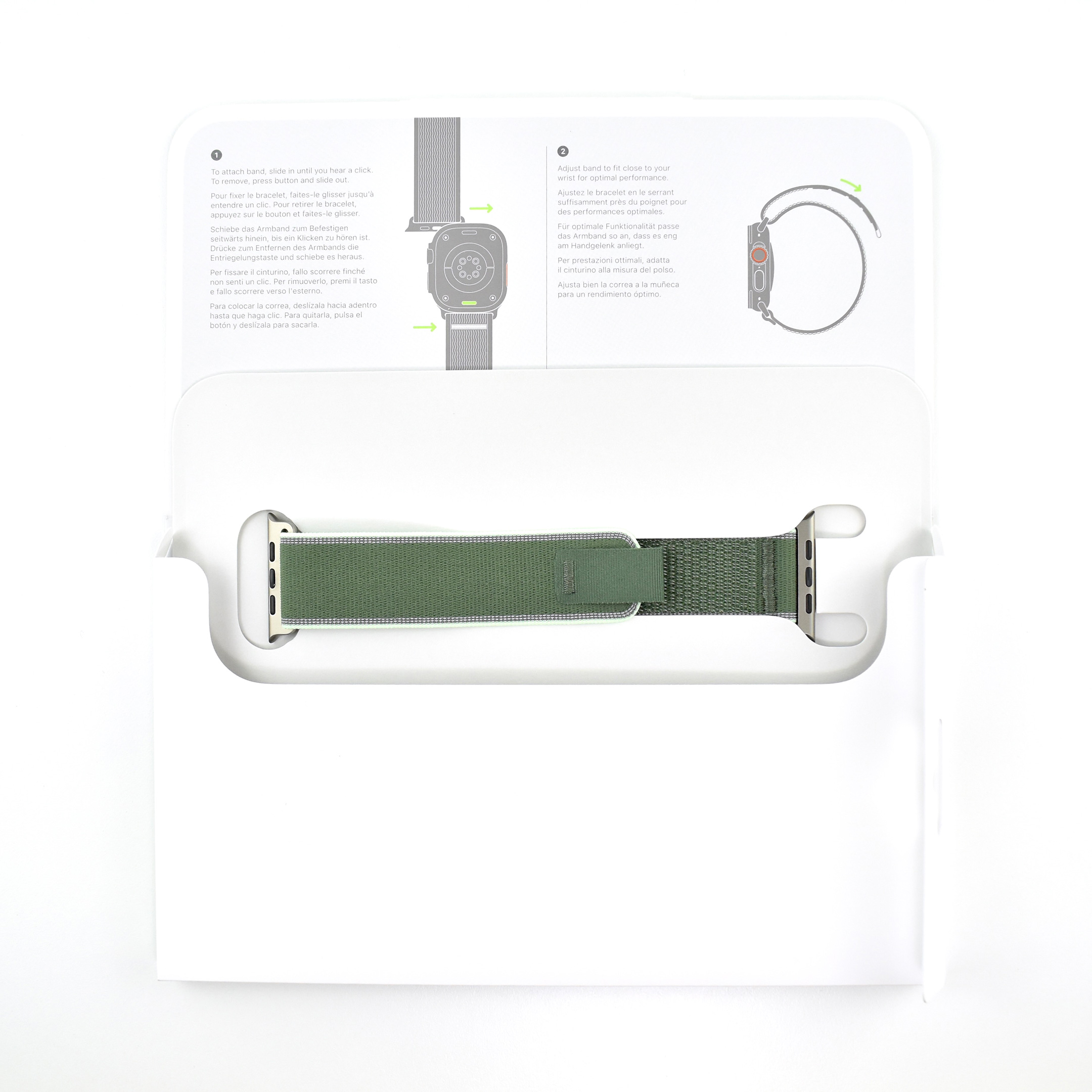“Designed specifically for endurance athletes and runners, the Trail Loop band is the thinnest Apple Watch band to date. The lightweight woven textile is both soft and flexible, allowing it to cinch to the optimal fit, and the convenient tab is designed for quick and easy adjustment.”